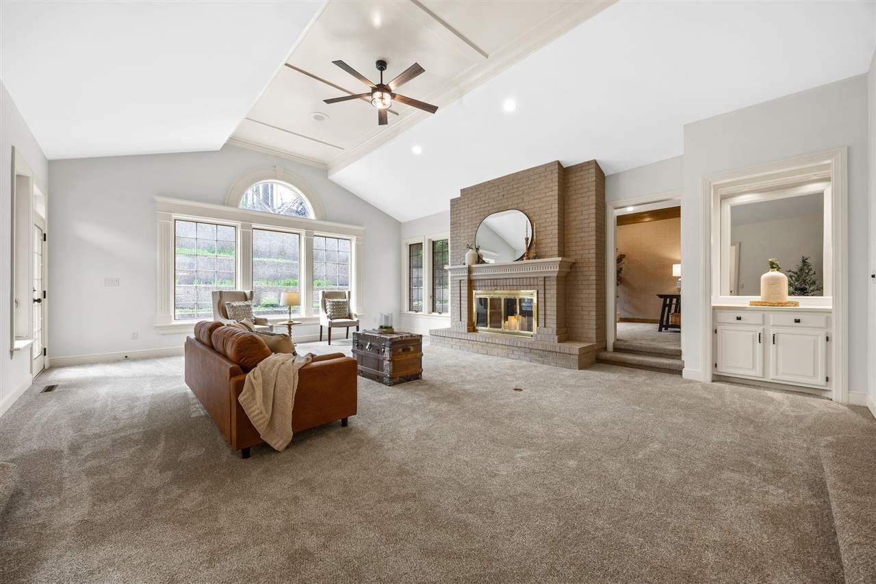 This impressive home offers luxury, space, and thoughtful design, all set on a private cul-de-sac on a .79-acre lot. Thoughtfully updated, this sprawling ranch with over 4,400 sq ft delivers a distinctive blend of modern convenience and peaceful surroundings. Stunning windows fill the home with natural light, and the generously sized rooms create warm, inviting, and functional spaces throughout. The spacious kitchen features beautiful cherry cabinetry with convenient roll-outs, a large island with breakfast bar seating, a swing-out pantry cabinet, a butler's pantry w/prep sink, and both formal + casual dining spaces. The dramatic great room, featuring a double-sided fireplace shared with the office, adds a special touch. The primary suite is a true retreat, featuring a spa-inspired bath with a soaking tub, tiled shower, dual vanities, and a walk-in closet. The lower level adds great flexibility with a large rec room featuring plenty of built-ins, a workout/bonus room, and even a sauna! There is also plenty of unfinished space, ideal for woodworking, hobbies, or whatever suits your needs. The main floor office can easily be converted to a fourth bedroom, if desired. Additional features include a fully irrigated yard, a newer roof (2025) and A/C unit (2026), and a long list of updates throughout. Call today for a private showing!